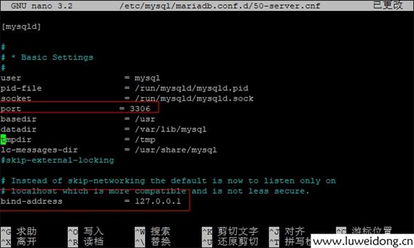 找到被注释掉的 port 和没有注释掉的 bind-address,分别对其取消注释和增加注释。保存后重启服务。