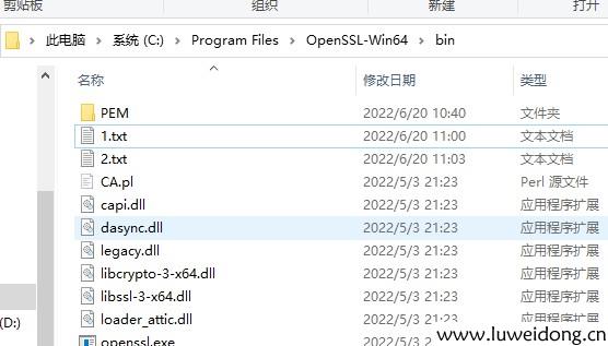 1)打开openssl安装目录:C:\Program Files\OpenSSL-Win64\bin