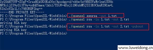 可以看到私钥和公钥都是以BEGIN....以及...END 结尾,这是OpenSSL使用PEM(Privacy Enhanced Mail)格式来存放信息,是OpenSSL默认采用的信息存放方式。