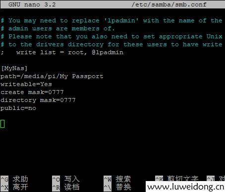 MyNas: 这定义了与共享文件夹有关的地址和其他配置。例如,共享文件夹将是以下地址:\ raspberrypi \ MyNas。