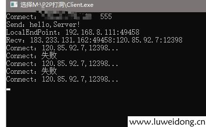 3、最后,我们可以让两台客户端互相连接,或者一台先发一个请求,打个洞;另一个在去连接;