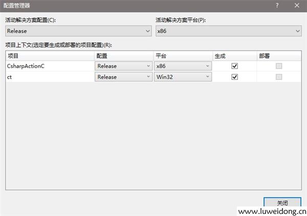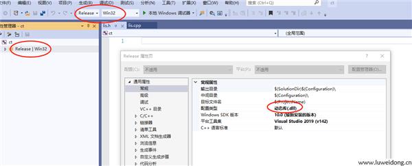 打开配置管理器:选择平台:Win32,配置类型:动态库(.dll)