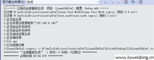 5、点击生成,VS自动连接远程linux主机,并生成.so文件