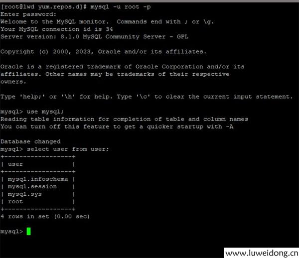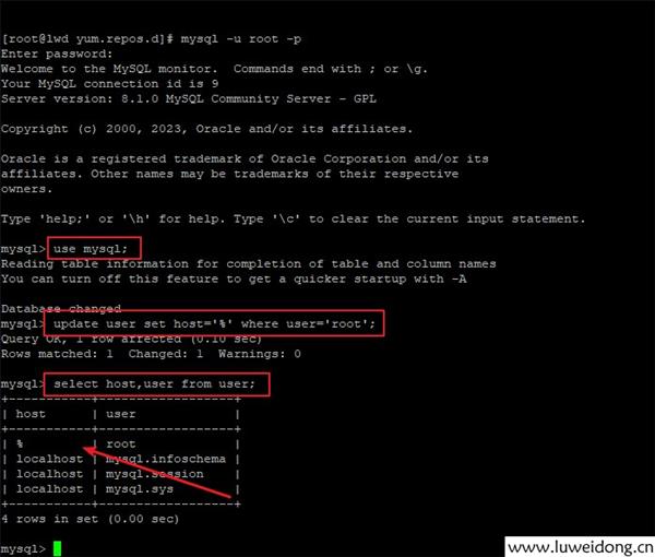 启动服务后,按以上方法,(1)查找临时密码,(2)登录mysql,(3)修改密码,(4)再设置允许远程登录等。