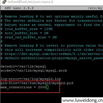 添加 max_connections = 2000(数量可自定义) 保存后重启服务:systemctl restart mysqld