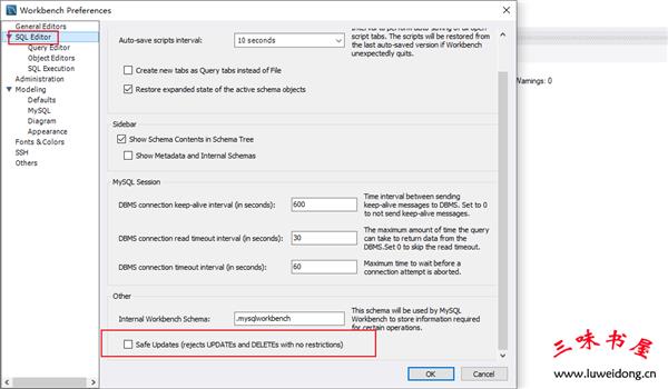 今天在MySQL Workbench中执行一句更新语句时,提示失败: