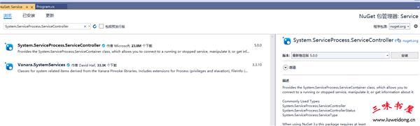 5、NuGet中引用:System.ServiceProcess.ServiceController