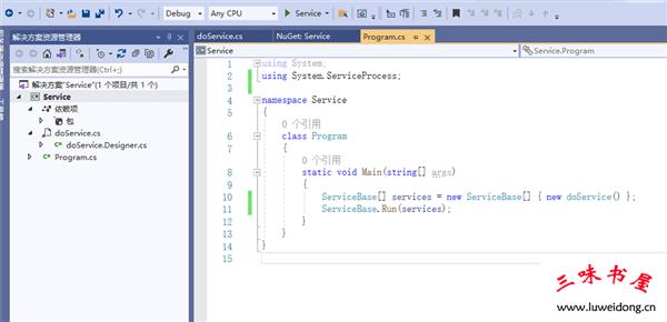 ServiceBase[] services = new ServiceBase[] { new doService() };