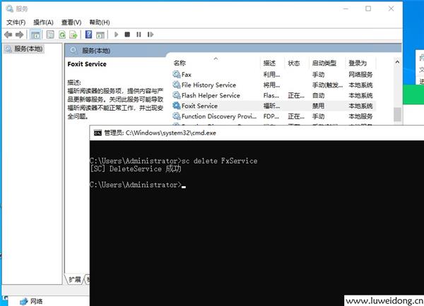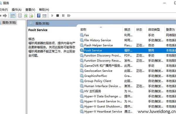 我打开本地服务,查找到了定时服务Foxit Service