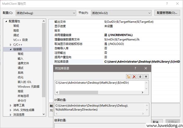 相对路径类似于:..\..\MathLibrary\$(IntDir)