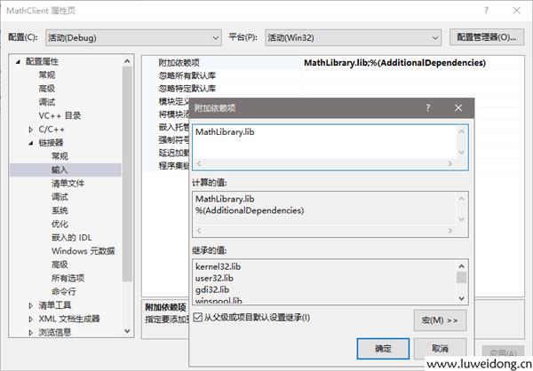 c、添加MathLibrary.lib
