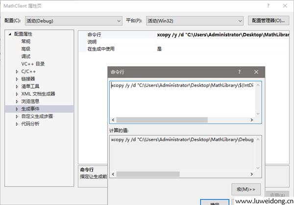 xcopy /y /d "C:\Users\Administrator\Desktop\MathLibrary\$(IntDir)MathLibrary.dll" "$(OutDir)"
