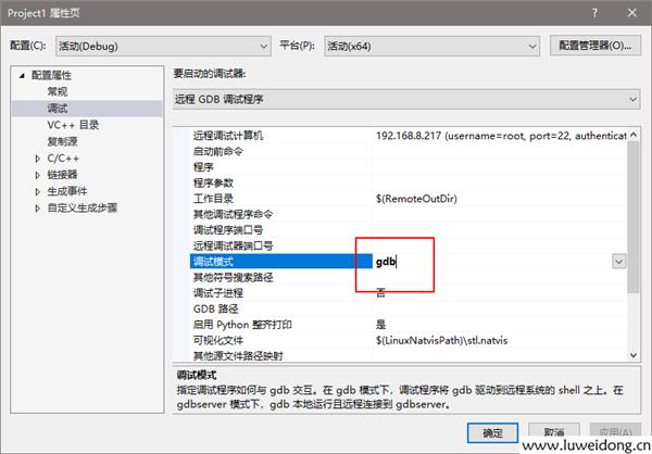 3、调试模式改为:gdb