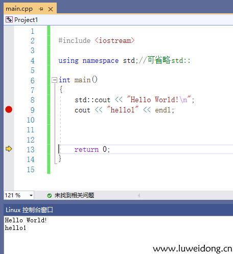 4、设置断点,F5调试执行,查看linux调试窗口信息