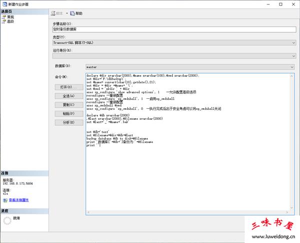 本文阐述:使用MS SQL代理的作业实现自动定时备份数据库