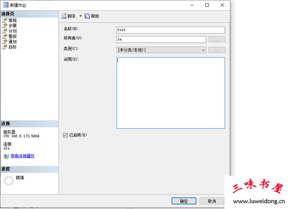 左边的选择页,共有6个菜单,分别是:常规、步骤、计划、警报、通知、目标