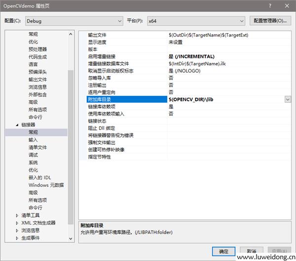 2)衔接器,常规,附加库目录:$(OPENCV_DIR)\lib