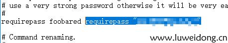 找到requirepass foobared ,在后面增加requirepass "密码",如图:
