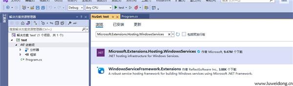 2、安装 Microsoft.Extensions.Hosting.WindowsServices
